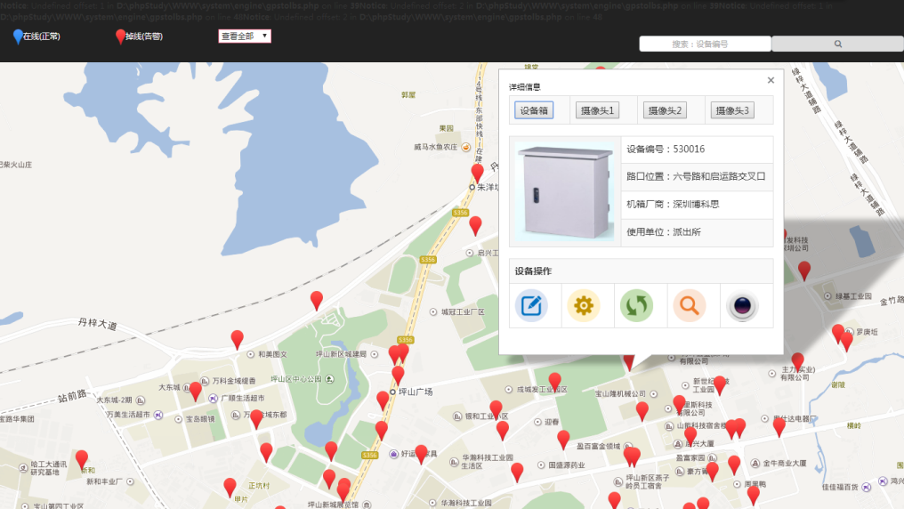 精準機箱地圖:管理系統對該管區的每個箱子的名稱、所屬組織、設備類型、IP地址、都有明確的表示。能精準確定該箱所屬地理位置。